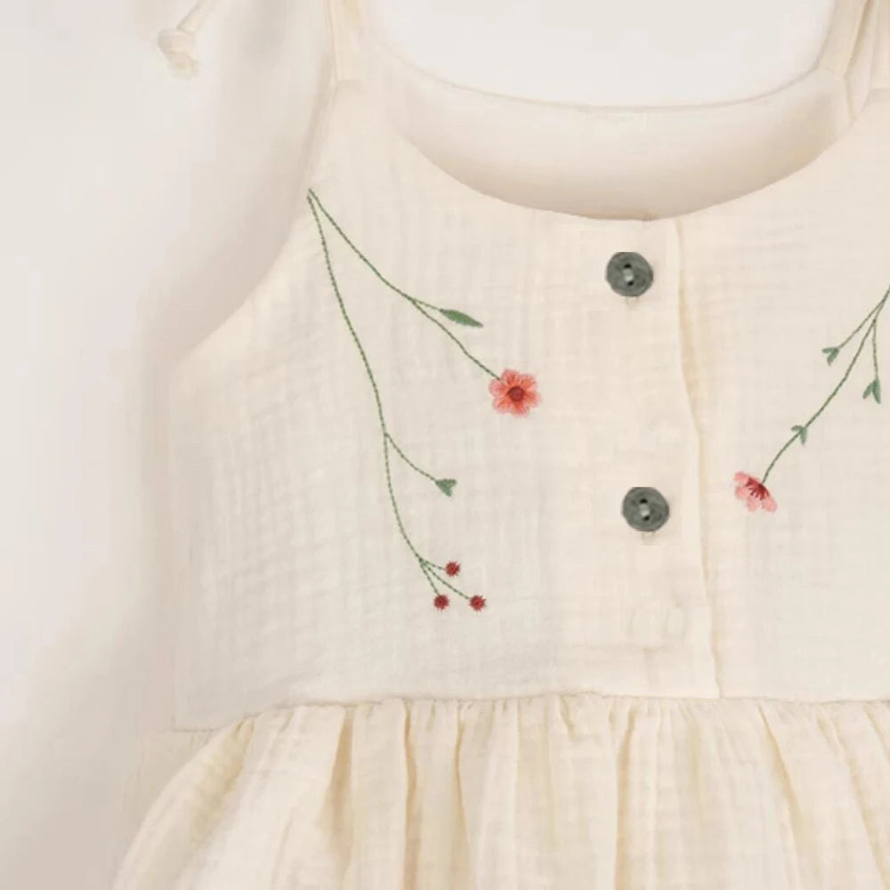 Sprout out in style with baby's Wildflower Romper! It's a soft blend of natural sweetness, perfect for family photos. Enjoy the beautifully embroidered floral motif inspired by our garden. Adjustable shoulder straps and stretchy leg openings allow for a comfortable fit.